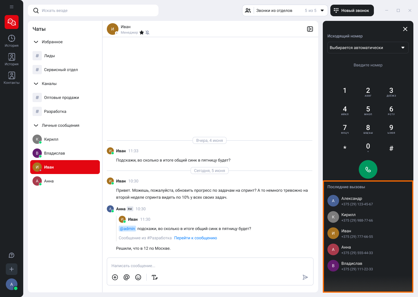 В Корпоративном мессенджере удобно созваниваться как с коллегами, так и с клиентами. Ниже расскажем о том, как принимать и совершать звонки.