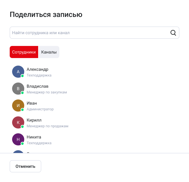 Появится окно с уведомлением об отправке записи — из него вы можете перейти в чат.