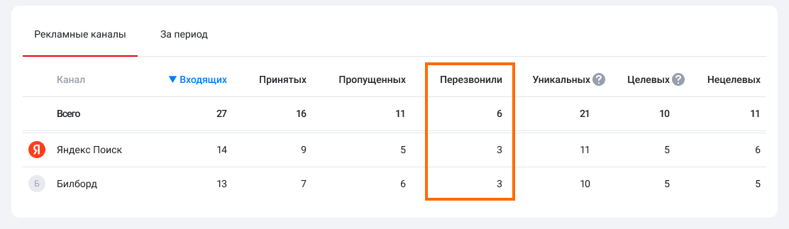5. Отслеживайте, по скольким пропущенным звонкам перезвонили