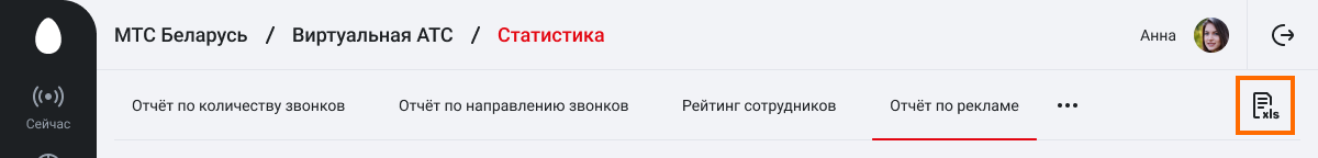 Вы можете экспортировать отчет по каждой рекламной кампании в формате xlsx. Экспорт в xlsx позволит провести более глубокий сравнительный анализ данных, используя собственные инструменты для аналитики. Комбинируйте отчет по рекламе с другими данными. Например, добавив столбец с расходами на рекламу, вы можете посчитать стоимость уникального звонка на рекламный номер. Чтобы скачать отчет в формате xlsx, кликните на иконку с подписью xls в правом верхнем углу экрана.