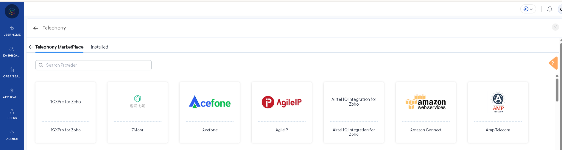 3. Перейдите на вкладку «Telephony Marketplace».