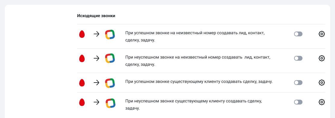 Вы можете настроить сценарии интеграции отдельно для входящих звонков.